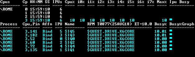 Thus, RPM shows \ROME Cpu 3 becoming progressively busy from processes: $IQ0,