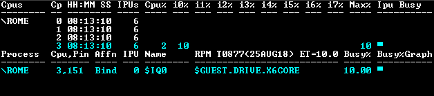 RPM shows \ROME Cpu 3 becoming increasingly busy from process names: $IQ0,